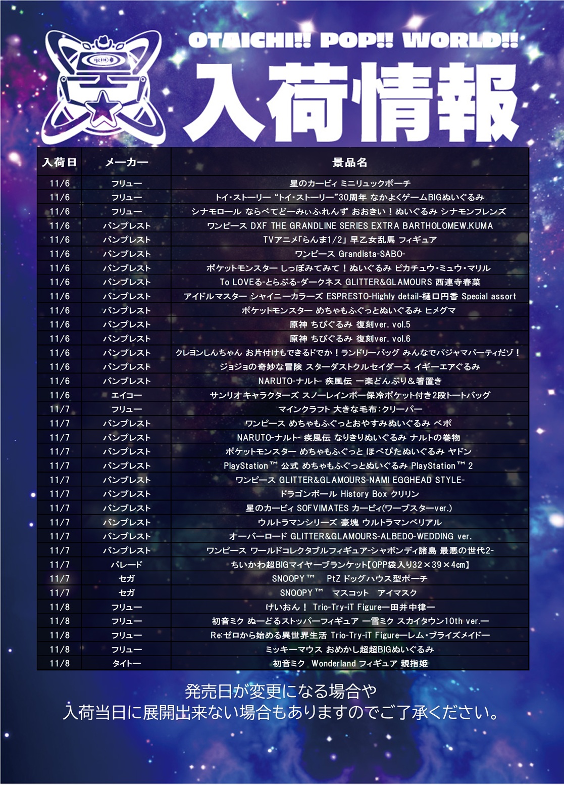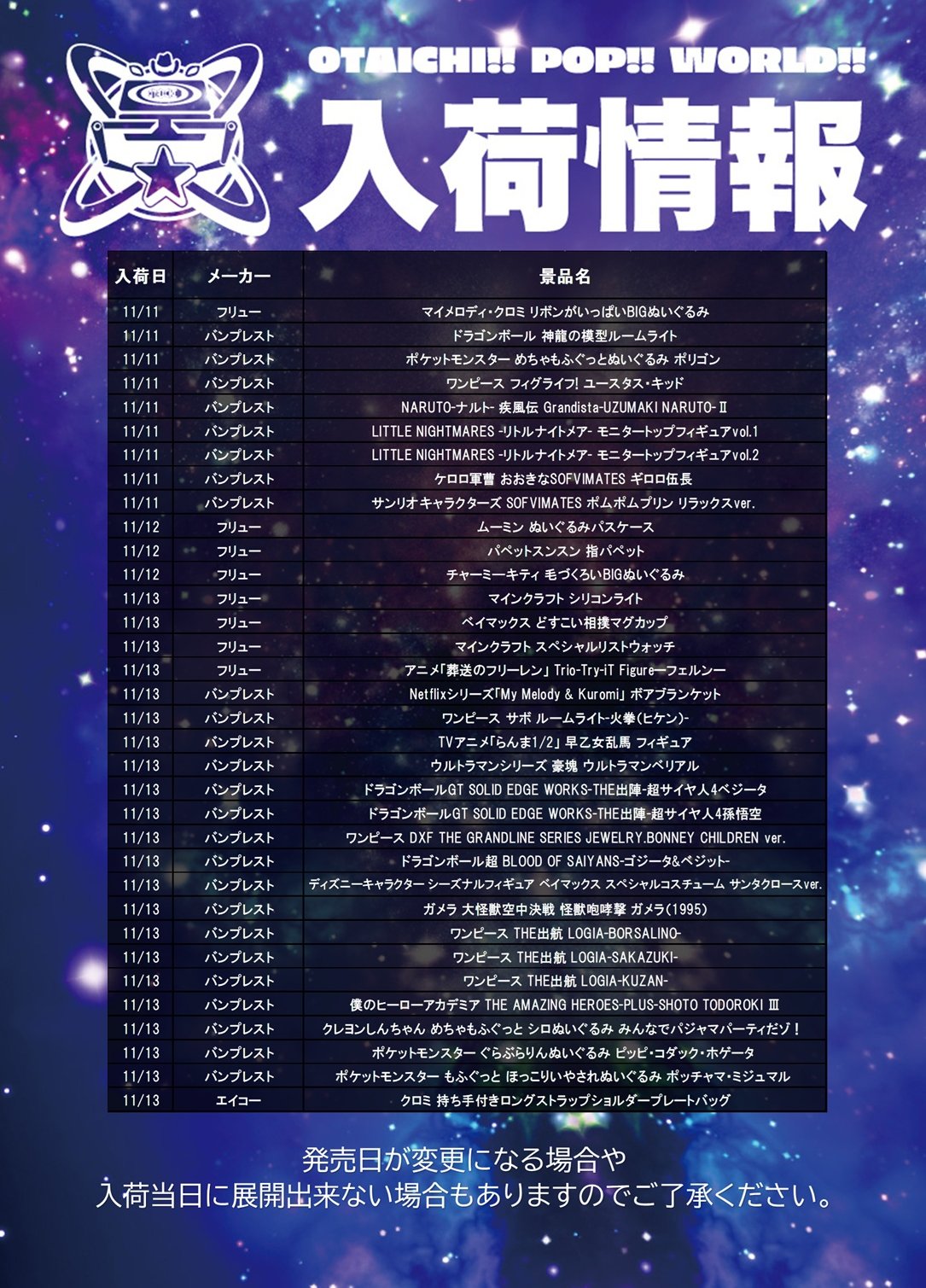 入荷情報(11/11~11/15)
